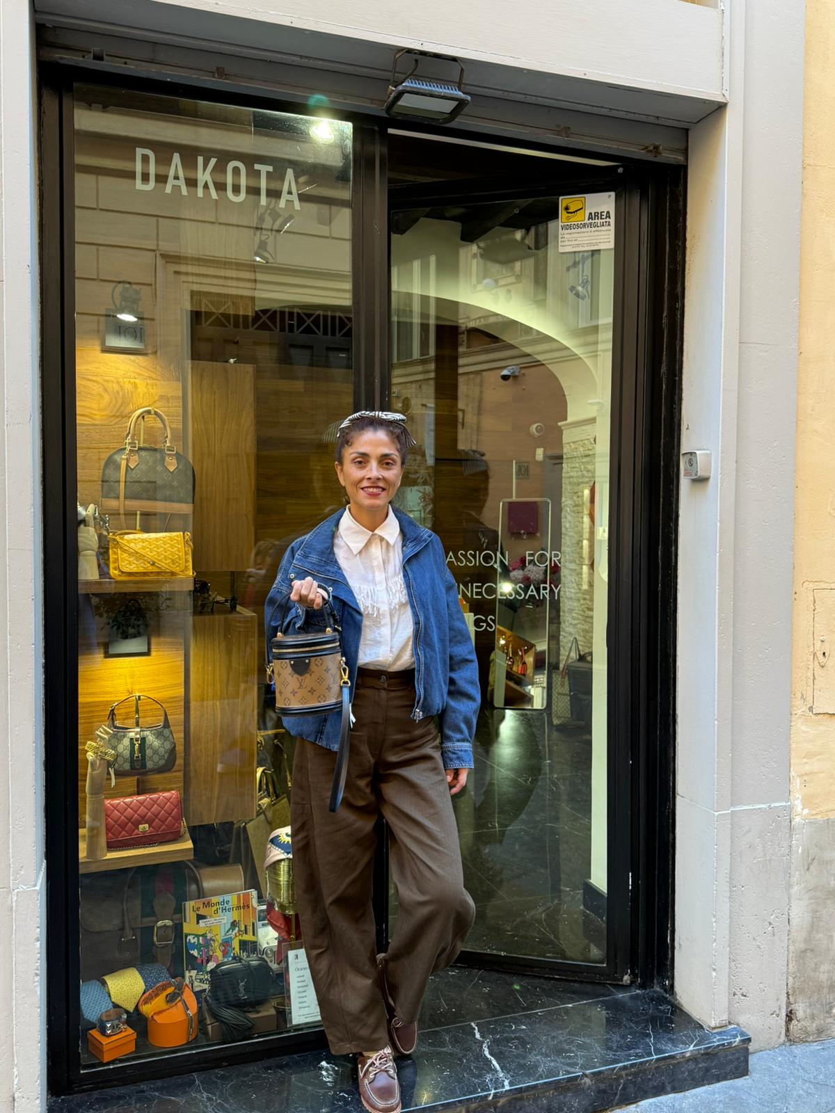 - Material: Monogram canvas, calfskin trim, microfiber lining;