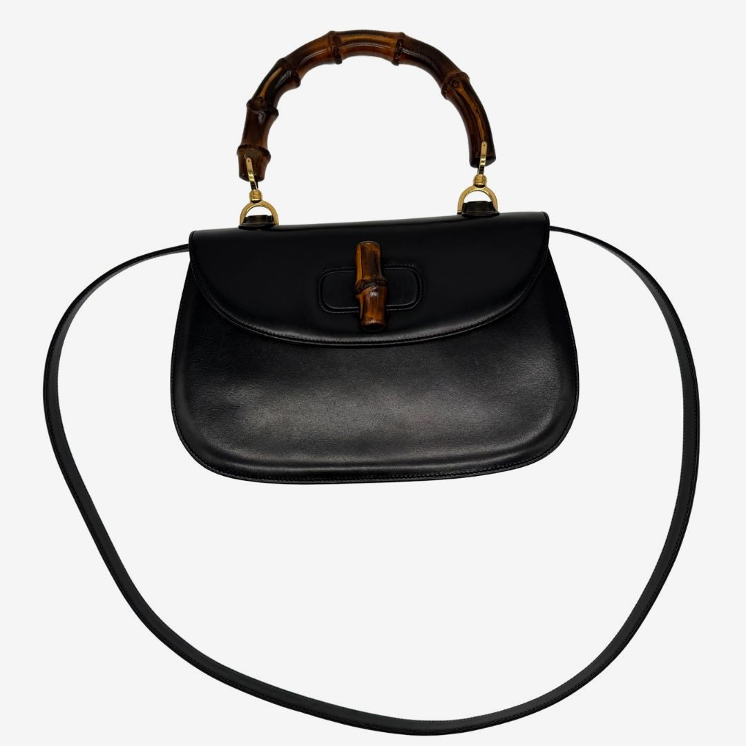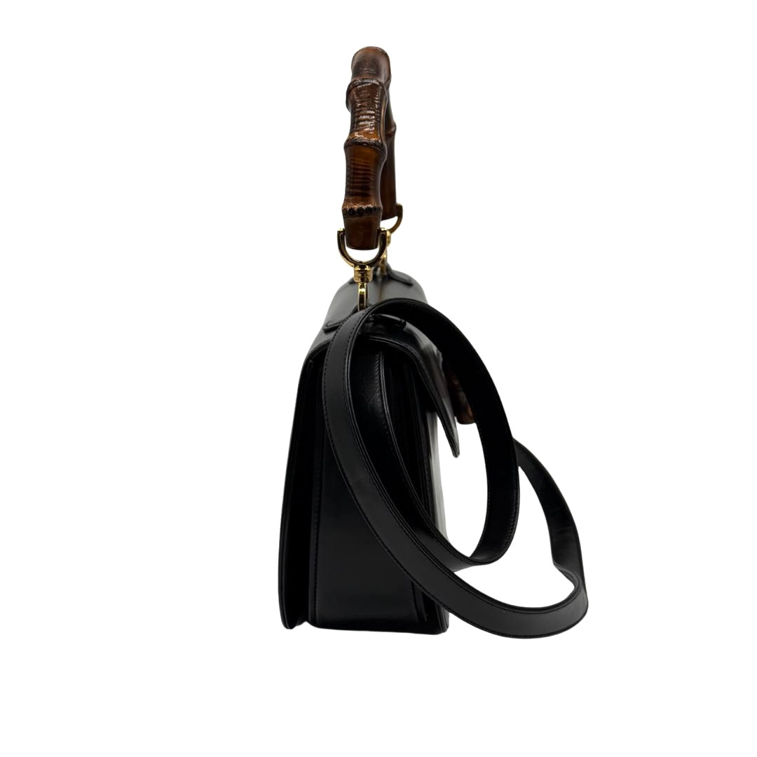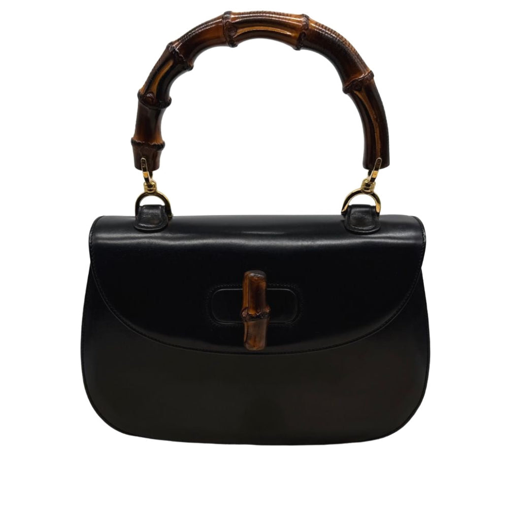 - Material/Color: Smooth black calfskin, bamboo details;