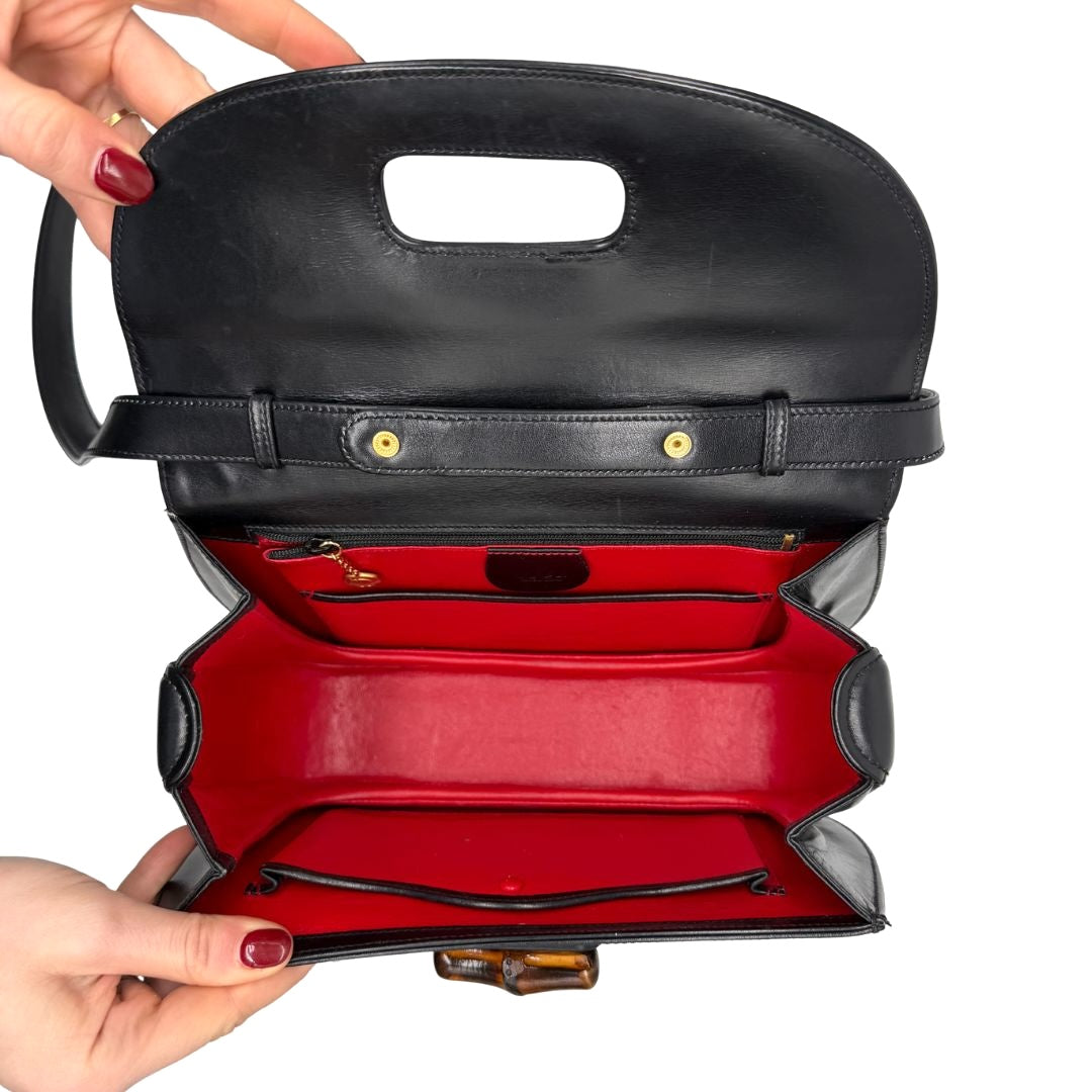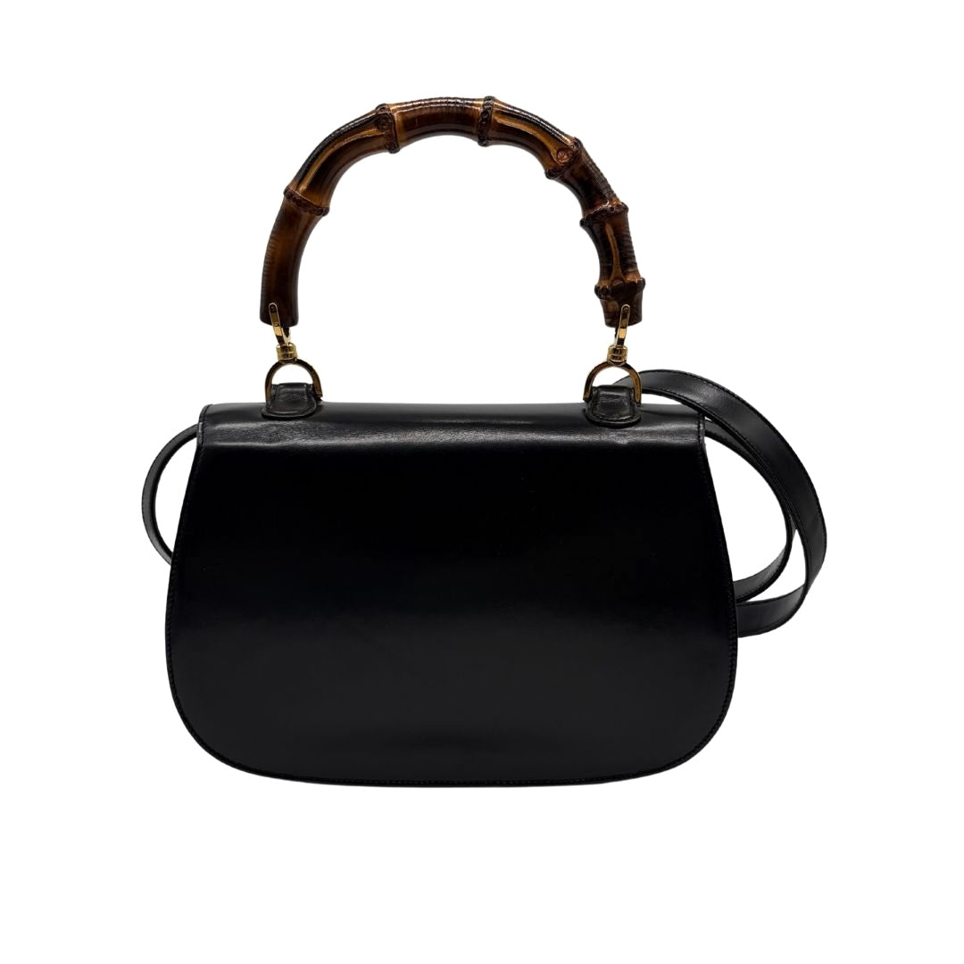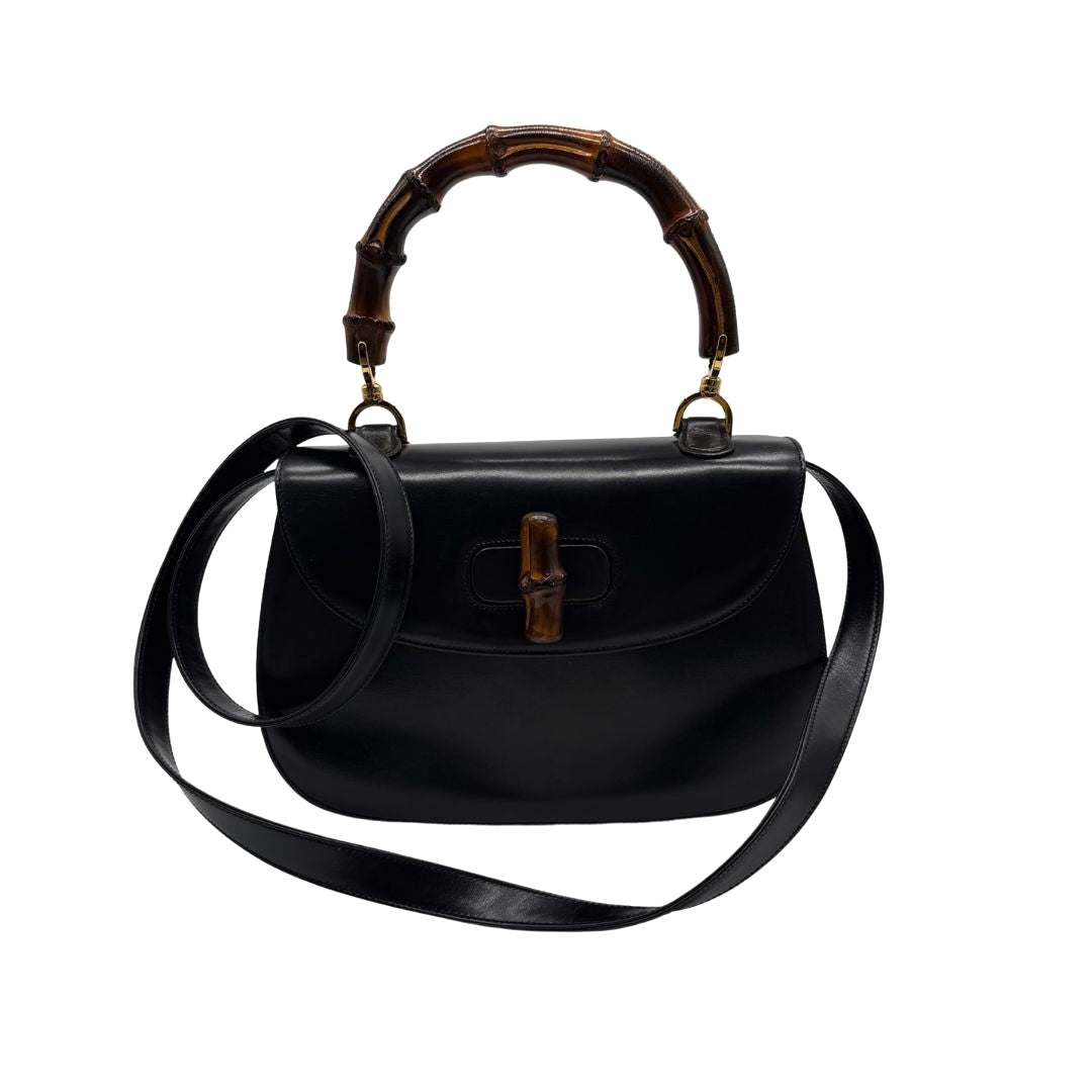 - Material/Color: Smooth black calfskin, bamboo details;