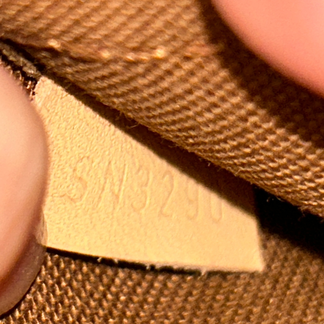 - Materiale: tela monogram, pelle di vacchetta e parti metalliche dorate;