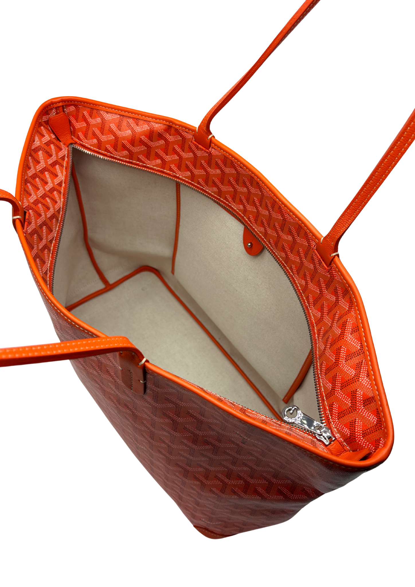 - Materiale: Tela Goyardine e pelle di vitello Chevroches, Interno in lino e cotone, manici e angoli in pelle;