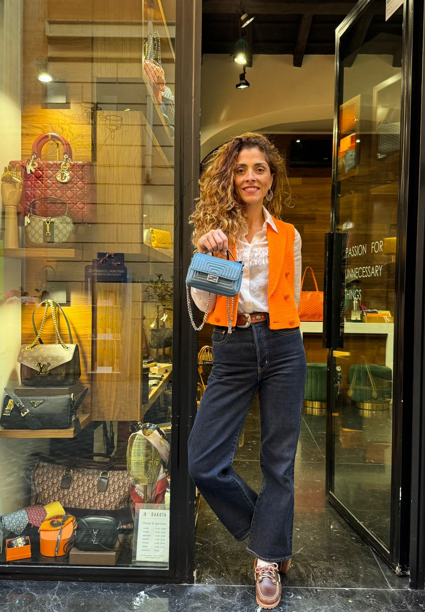 • Carica l'immagine nel visualizzatore di Gallery, Double Micro Baguette in Pelle Azzurra