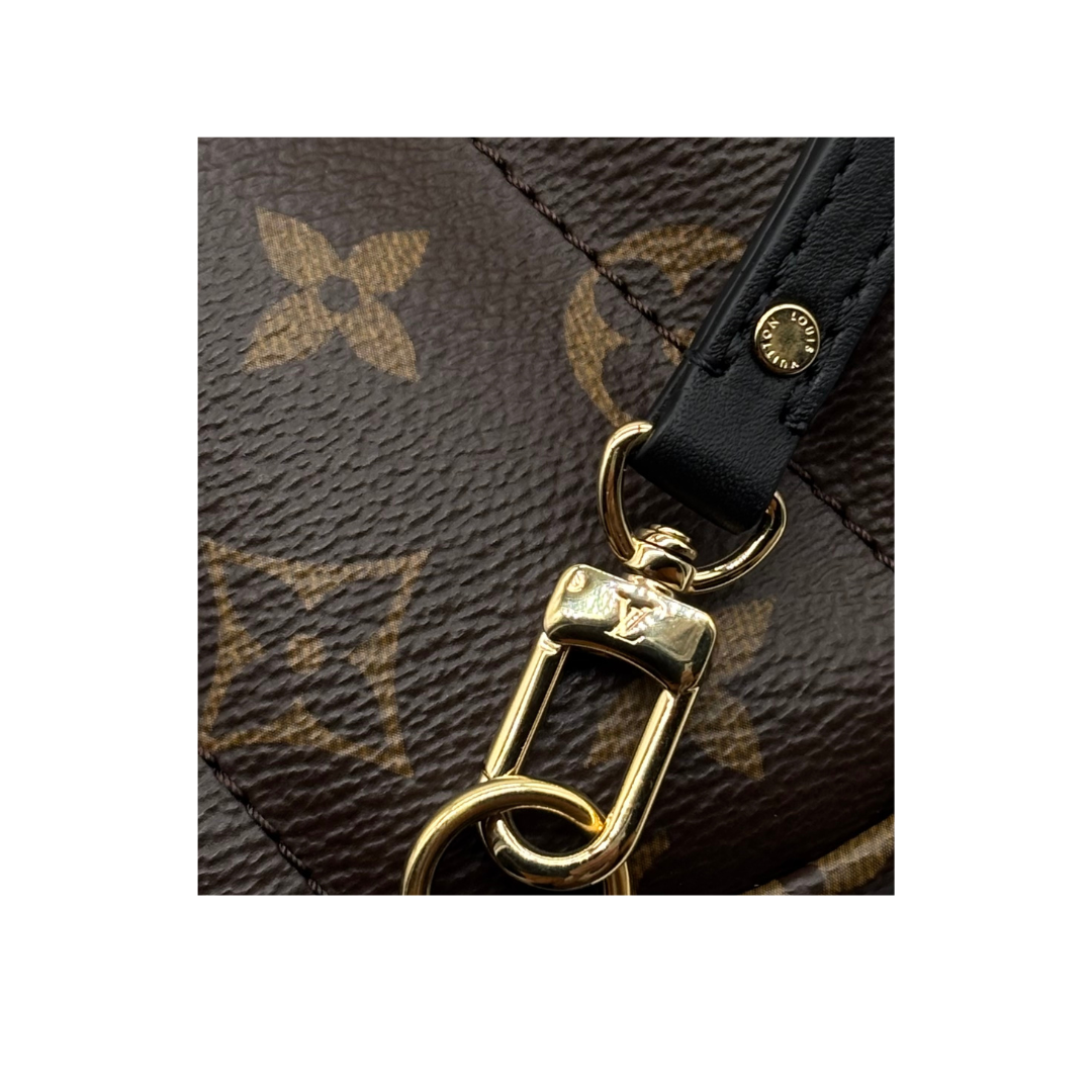 - Materiale: tela Monogram, finiture in vacchetta colorata con retro in gommapiuma, fodera in tessuto